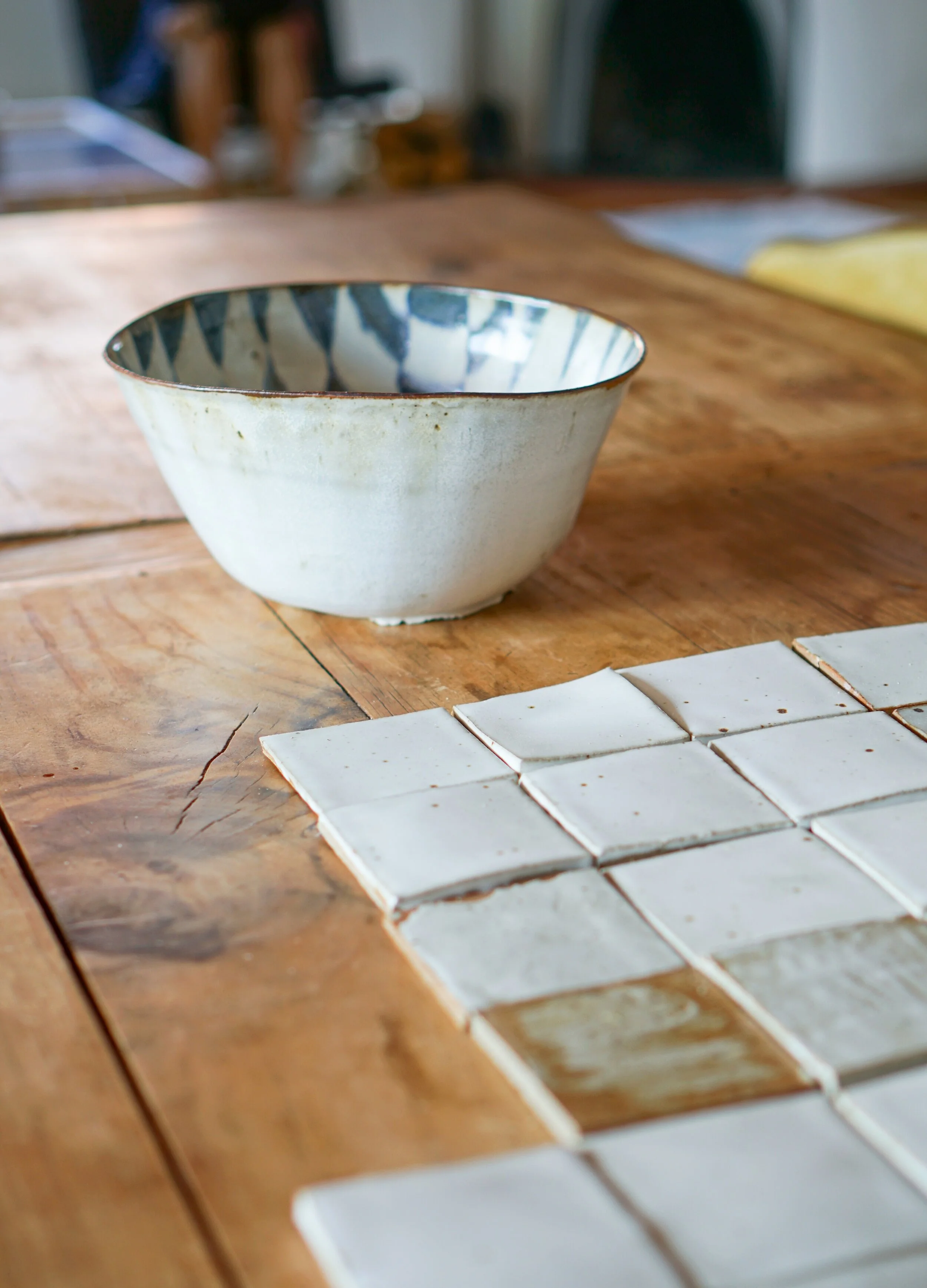 Some of Krysta’s ceramic work - a bowl and tiles for her kitchen renovation.