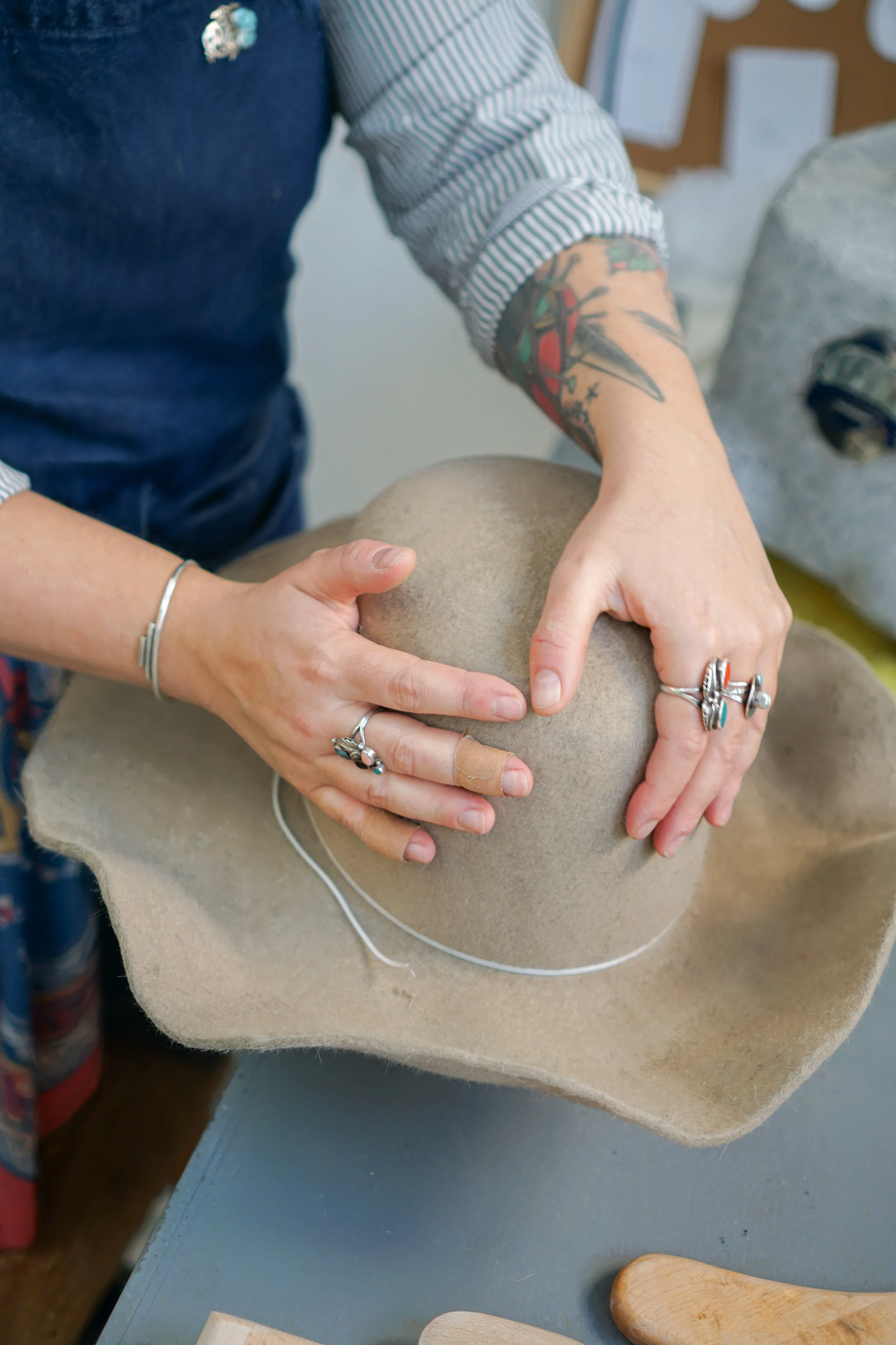 I work closely with each client to make a hat that is truly their own and that’s built strong enough to live a life as full as it’s owner. My hands do every part of the process and I take time to get to know my client’s heads and their hearts.