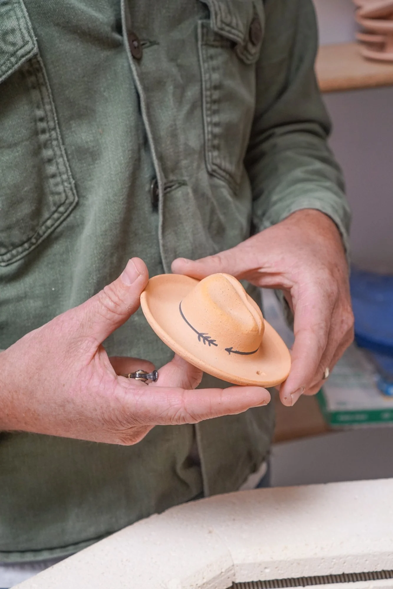 I started working with clay seven years ago in the ceramics studio at City College of San Francisco. I took as many classes as I possibly could. After a few semesters I moved to a shared studio and kept developing/refining my work. Along the way I had a friend in Marfa, TX, who was an encouraging supporter of my work and offered to sell it in their store.